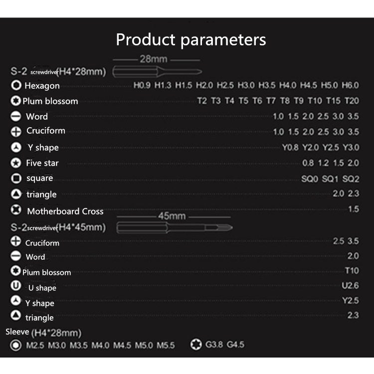 Torx : T2 T3 T4 T5 T6 T7 T8 T9 T10 T15 T20